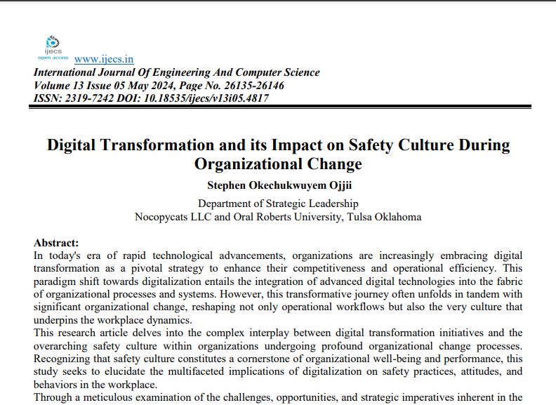 Digital Transformation and its Impact on Safety Culture During Organizational Change