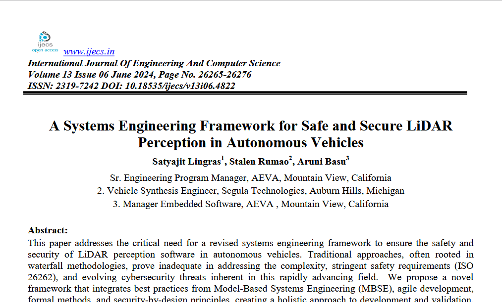 A Systems Engineering Framework for Safe and Secure LiDAR Perception in Autonomous Vehicles