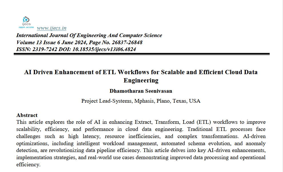 AI Driven Enhancement of ETL Workflows for Scalable and Efficient Cloud Data Engineering
