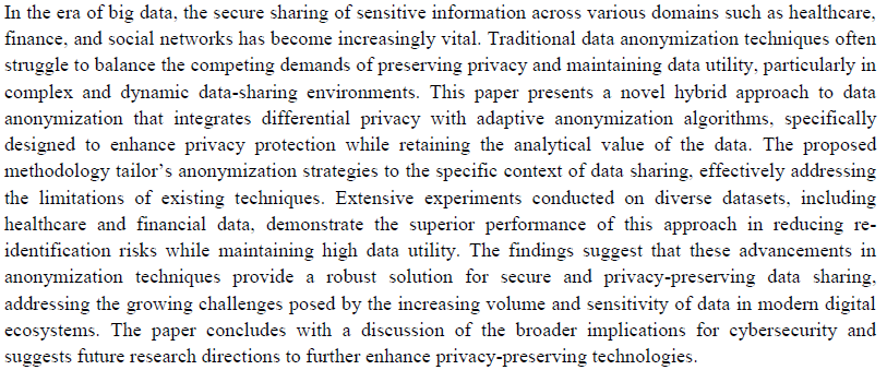 Advancing Data Anonymization Techniques for Secure and Privacy-Preserving Data Sharing in The Era of Big Data