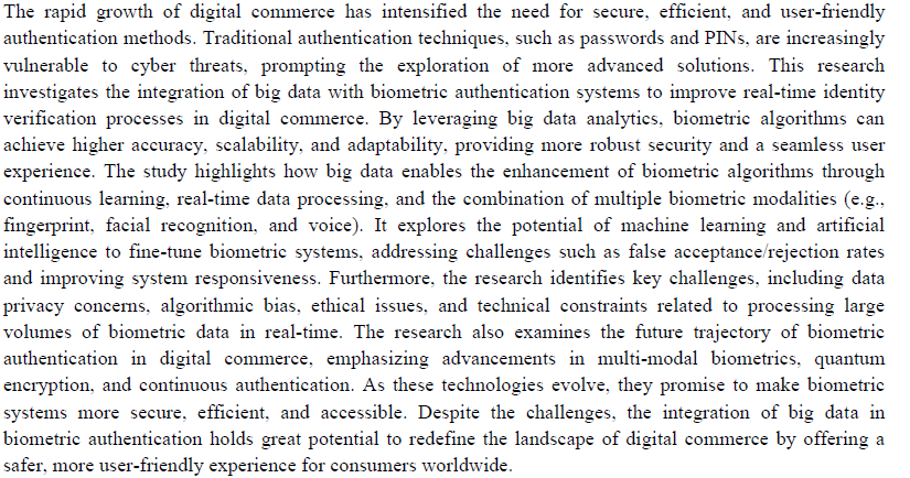 Leveraging Big Data to Improve Biometric Algorithms for Real-Time Authentication in Digital Commerce