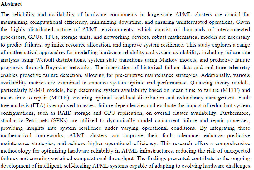 Mathematical Modeling of Hardware System Availability and Failure Prognosis in Large-Scale AI/ML Clusters