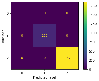 Figure 4.1 depicts the confusion matrix used to evaluate the performance of MLPN classification system using the validation set. It displays the type of errors made by the classifier. The MLPN predicted results of accident severity classification problem in road transportation system. The suggested model confusion matrix was created, with accurate predictions displayed at the secondary diagonal and inaccurate predictions noted above and below the main diagonal, or "off-diagonal elements," in that order using the testing dataset. The overall number of correctly predicted values recorded to be 1847+209+1=2057 instances with severity level 1, 2 and three while incorrectly predicted cases yielded 0+0+0=0 cases.