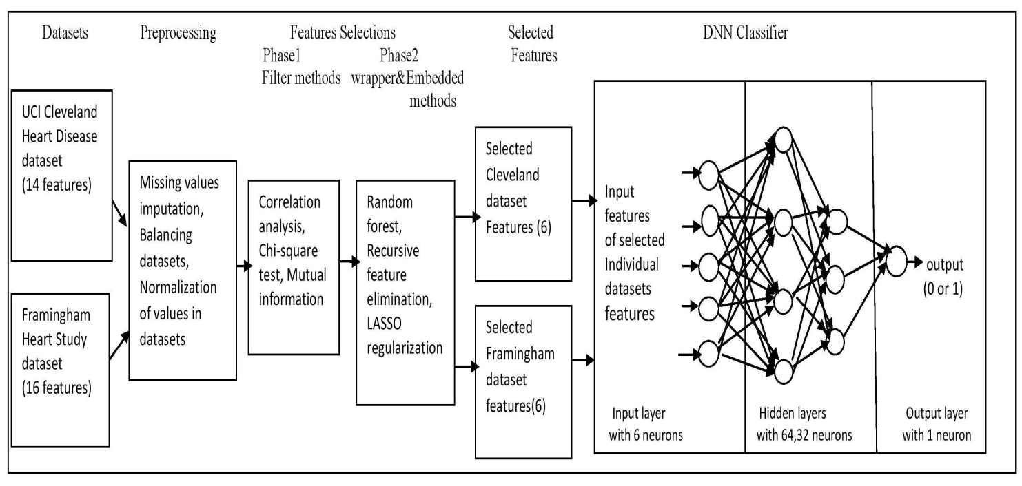Keywords: Heart disease, Deep Neural Network (DNN), Machine Learning, Hybrid Feature Selection, Deep Learning, baseline models.