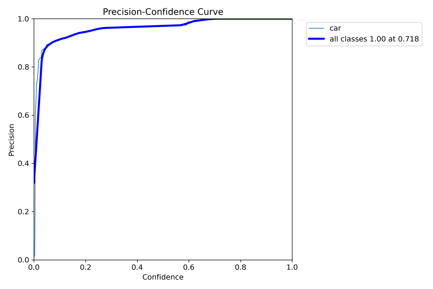 Figure 5 shows the Precision-Confidence curve, that indicated that the precision increases consistently with a higher confidence threshold, an indication that higher-confidence predictions are more reliable. This behavior supported the suitability of the model for vehicle detection applications under occlusion situations.