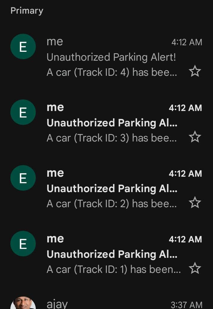 | True positiveFalse positiveFalse negativeTrue negative | 93%3%2%95% | 93% of the unauthorized parking cases were correctly detected.3% of authorized parking cases were misclassified as unauthorized, often due to vehicles near zone boundaries.2% of unauthorized parking instances were missed, primarily caused by occlusions or low-resolution frames.Instances where the system correctly identified authorized parking95% of the authorized parking instances were accurately identified. |