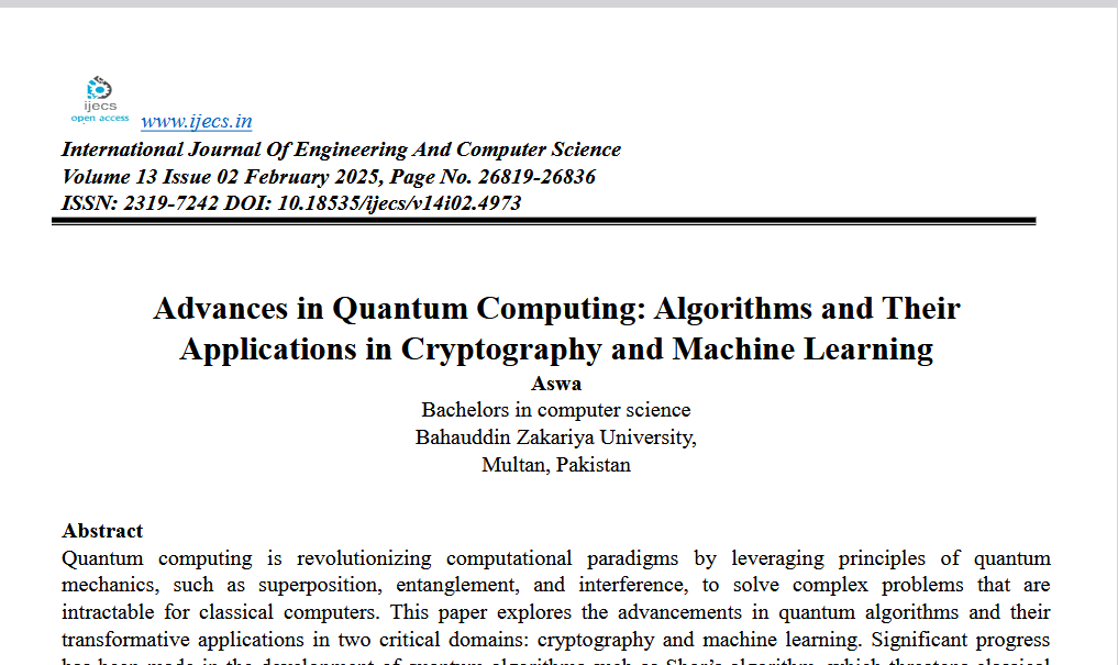 Advances in Quantum Computing: Algorithms and Their Applications in Cryptography and Machine Learning